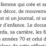 Suivre une femme qui crée et se déplace, explorer la notion de décor, de mouvement et d’immobilité... Ce livre n’est ni un journal, ni un essai sur un film ou un souvenir d’enfance. Découpé en 75 parties, il a subi l’influence des arbres et des rues. Parfois il marche droit, comme à longer la rue Daguerre sans faire le tour des boutiques. Parfois il bifurque, saute de branche en branche. Le documentaire Daguerréotypes d’Agnès Varda, sa carrière, les films de Jacques Demy, le Paris des années 70 et celui d’aujourd’hui, constituent les arrière-plans de cette réflexion poétique.