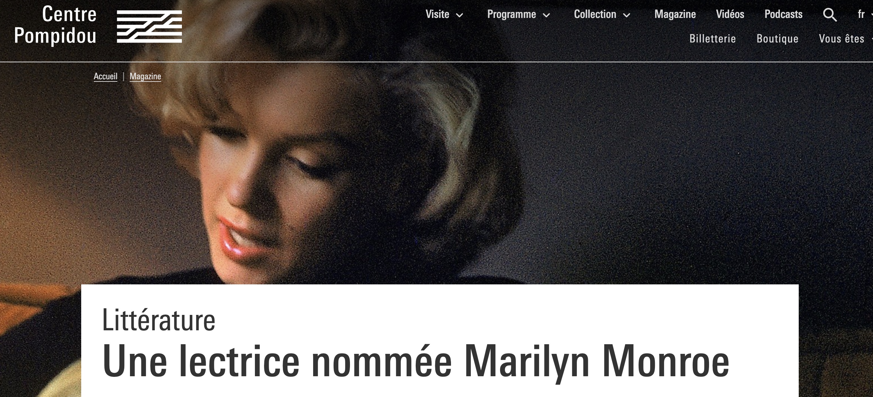 Dans le cadre du festival Extra !, je participerai à une table ronde au Centre Georges Pompidou le dimanche 10 septembre, de 17h à 18h30, en compagnie de Bernard Comment et Olivier Steiner. Cette rencontre est intitulée : Une lectrice nommée Marilyn Monroe. J’y parlerai, bien sûr, de Musée Marilyn. L’entrée est libre. L’événement se tiendra au niveau -1, dans le forum.
