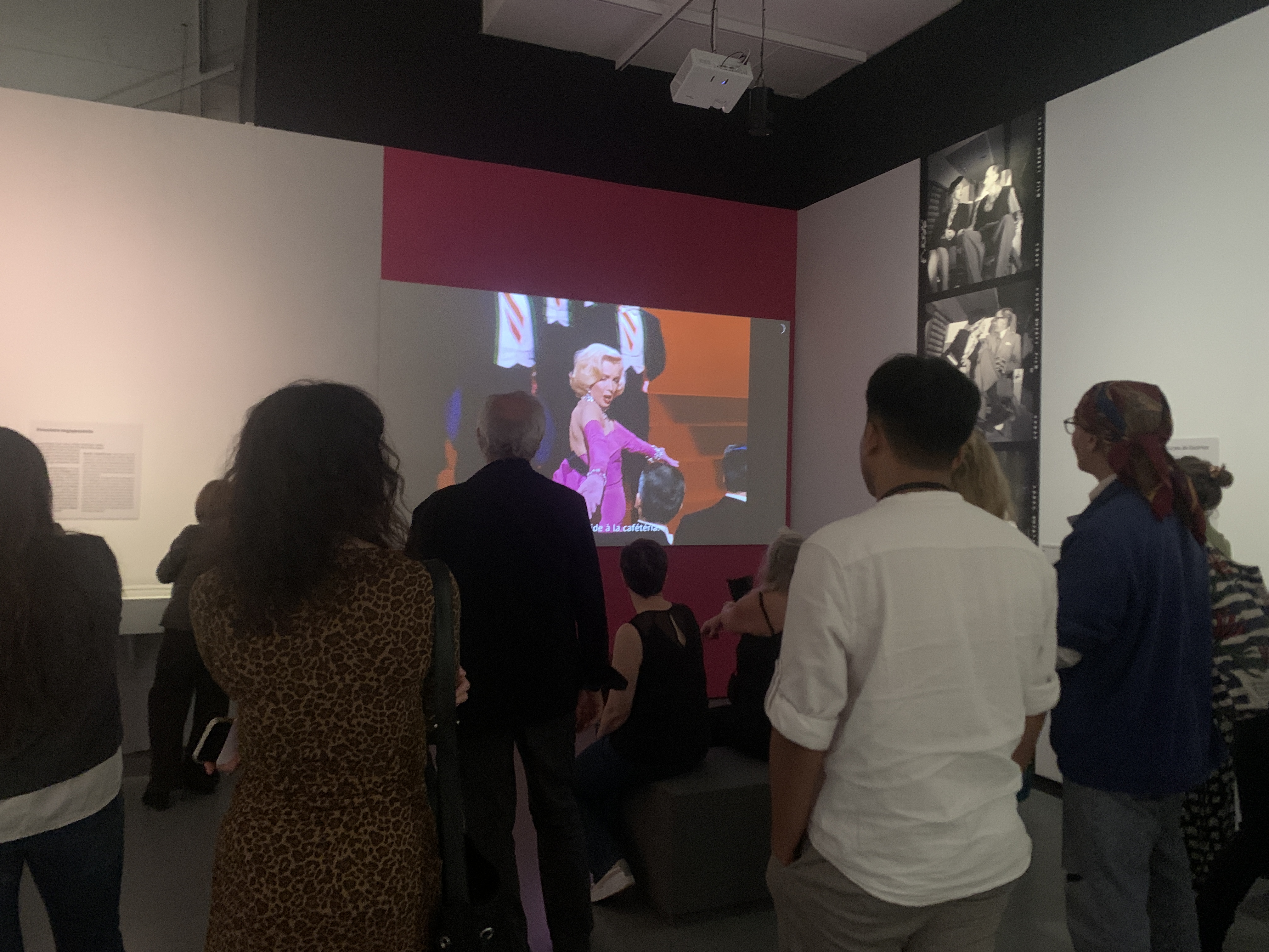 Marilyn, encore et toujours, en ce début de semaine... Mardi avait lieu le vernissage de l’exposition, très réussie, qui ouvre à la Cinémathèque et durera jusqu’à fin juillet. Je m’y suis rendue avec l’amie que je connais depuis le lycée et qui, rituellement, m’accompagne à ce type de soirée. Arrivées tôt, nous avons pu en profiter avant que la foule n’envahisse les salles. J’ai été particulièrement convaincue par les textes de présentation, que j’ai même photographiés — j’y reviendrai sans doute dans l’épisode de podcast que je prépare. La scénographie, le choix des couleurs, les extraits de films restaurés arrêtant le regard, la remise en contexte des éléments biographiques : tout cela, également, m’a paru pertinent.
