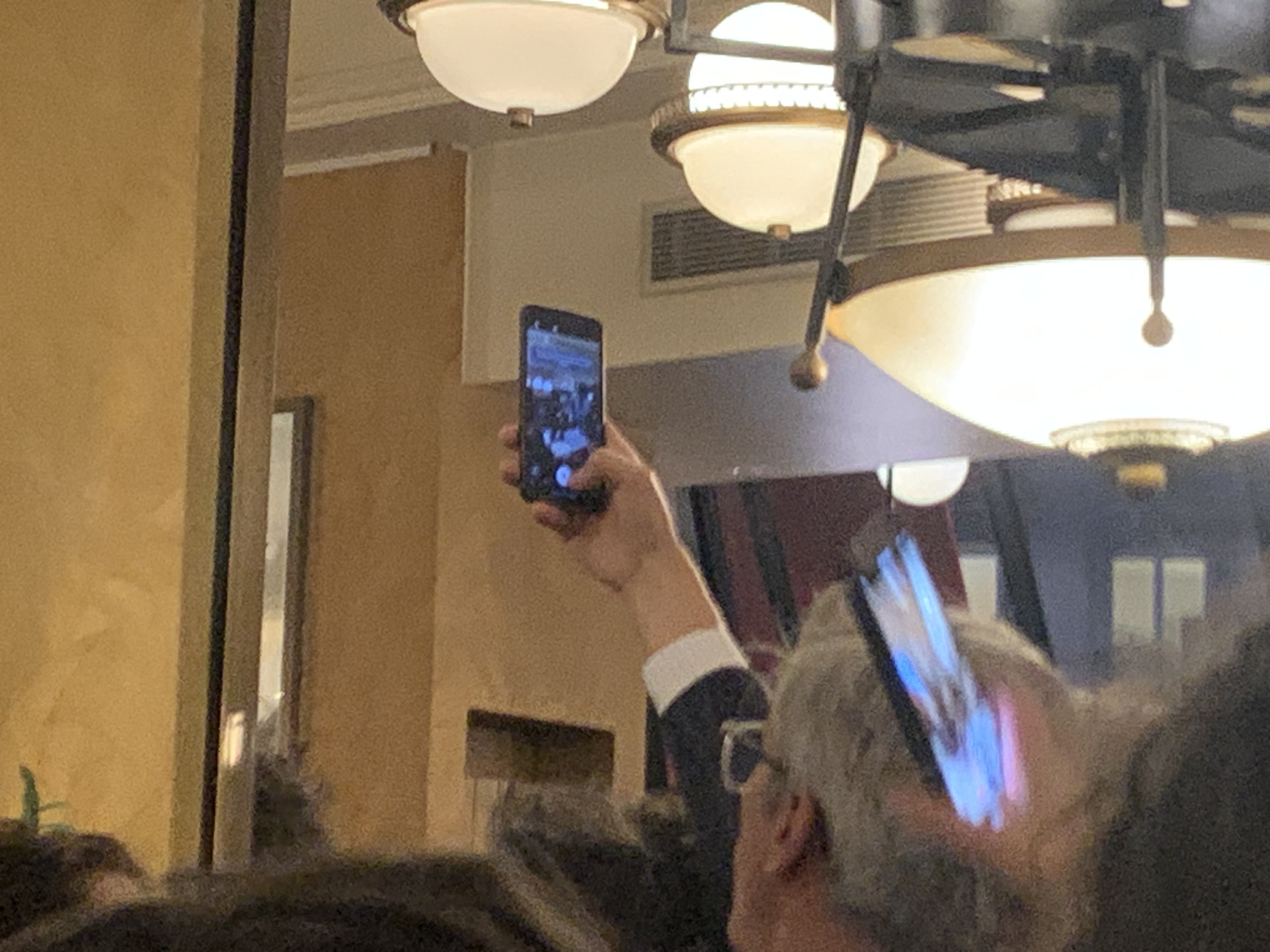 Lundi, j’ai pu constater que le rituel n’avait pas changé : après les discours, le chaos, musique à fond et foule compacte. Juste avant la remise du prix proprement dite, derrière ce pilier miroir qui me cachait la scène, Chris (? Je ne sais pas son nom actuel) de Christine and the Queens a chanté trois ou quatre chansons. Je ne voyais rien mais je me mettais à sa place. Je me disais qu’il fallait un grand professionnalisme pour se donner à fond, comme ça, à froid, devant un public qui n’est pas forcément venu pour vous. Je ne connaissais aucun des titres mais j’admirais la justesse de sa voix. Ensuite, après l’intervention des mécènes puis des lauréats (beaux discours de Bernard Bourrit comme d’Hélène Laurain), le Wepler a lancé sa playlist, remixes de tubes disco.