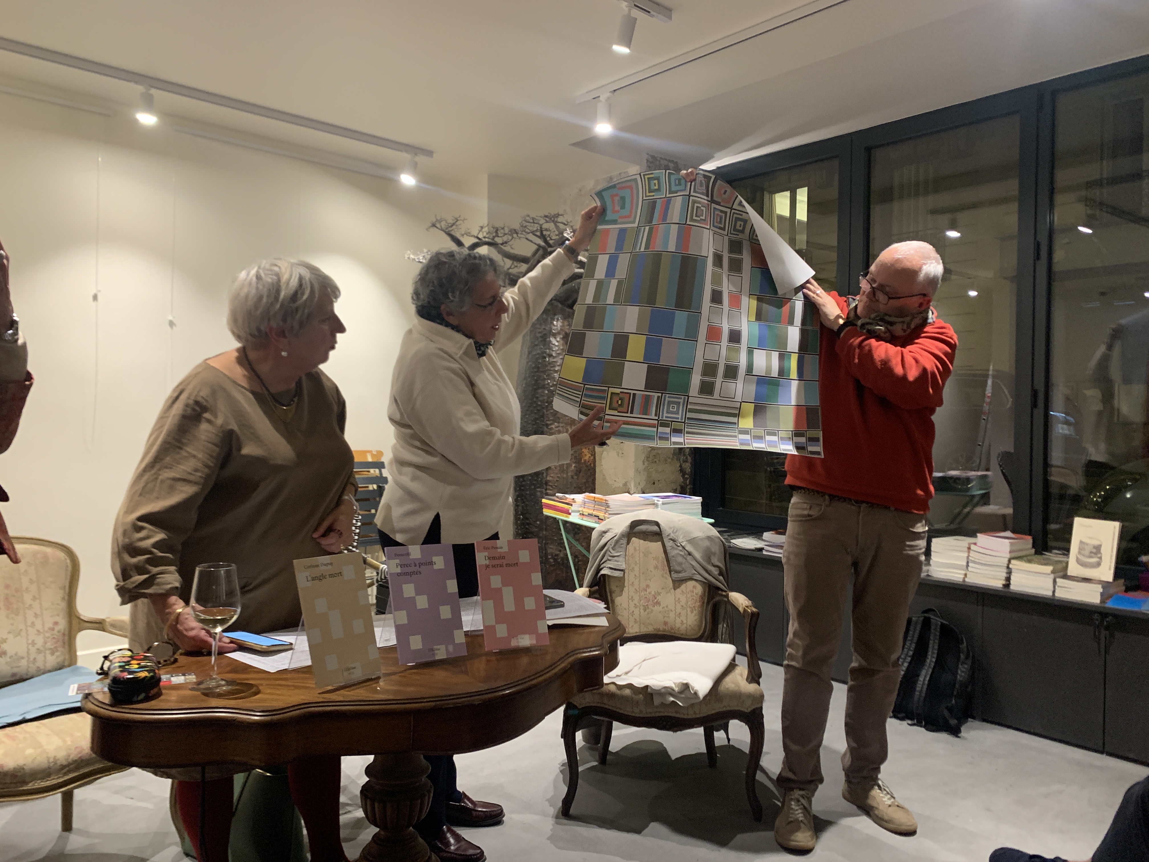Juste après, j’ai mobilisé l’énergie qui me restait et me suis rendue à la librairie L’Ours et la vieille grille pour assister à la soirée de lancement des trois nouveaux opus de la collection Perec 53 : Demain je serai mort, d’Eric Pessan, L’Angle mort, de Corinne Dupuy, et Perec à points comptés du collectif Perecofil.