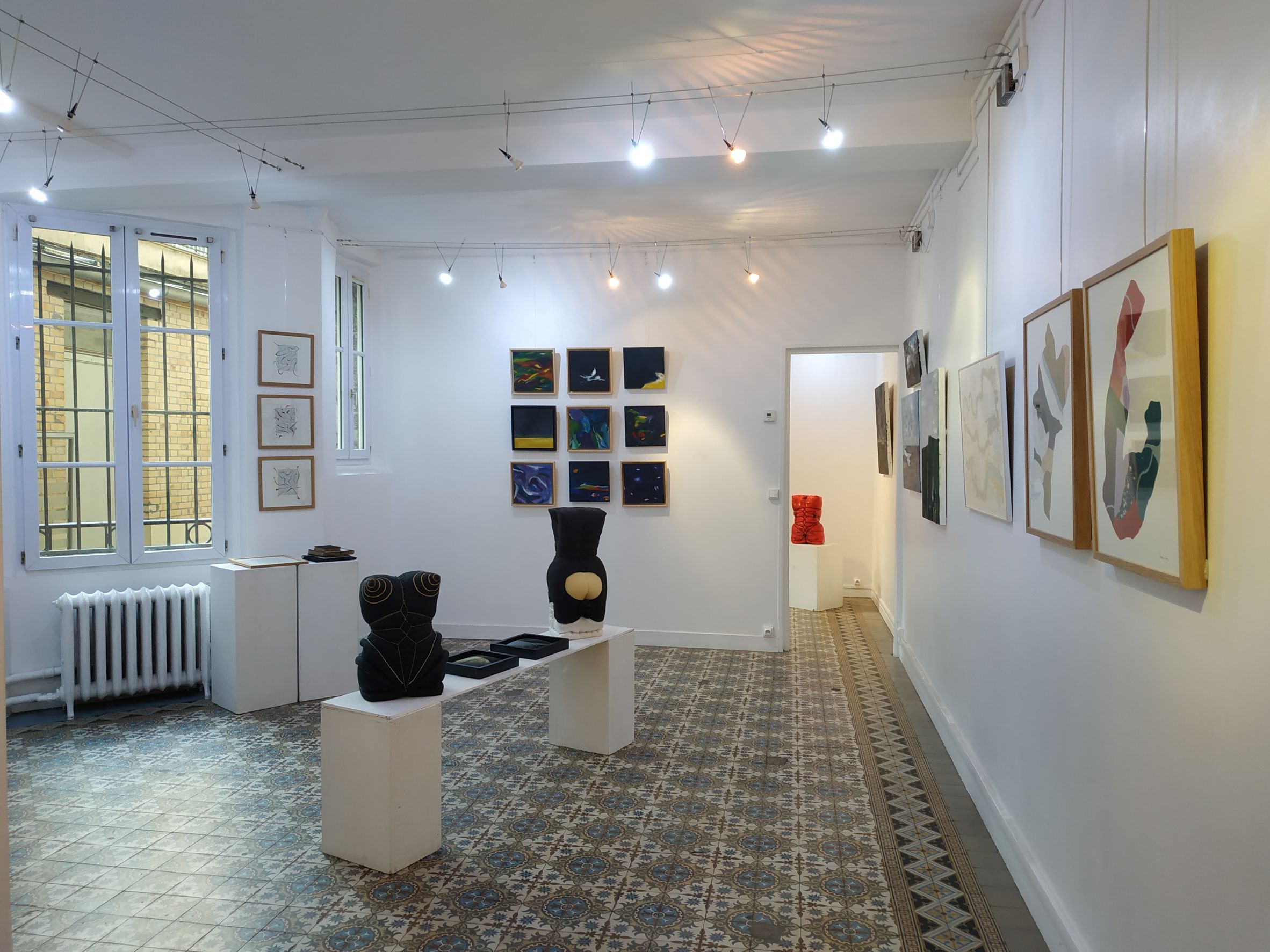 Par bonheur, au même moment, Mathilde Roux ouvrait les portes de l’exposition qu’elle a montée avec deux autres artistes, intitulée Vues et qui se tient encore jusqu’à ce soir 20 heures à la galerie Ménil’8, 8 rue Boyer, dans le 20e. La bonne idée n’était-elle pas de commencer par déjeuner dans le coin avec une autre amie (Sophie Coiffier pour ne pas la nommer : merci encore, Sophie, de ton soutien ce jour-là), de jeter un oeil sur Twitter au moment des résultats puis de se rendre ensemble à l’exposition de Mathilde ? Évidemment.