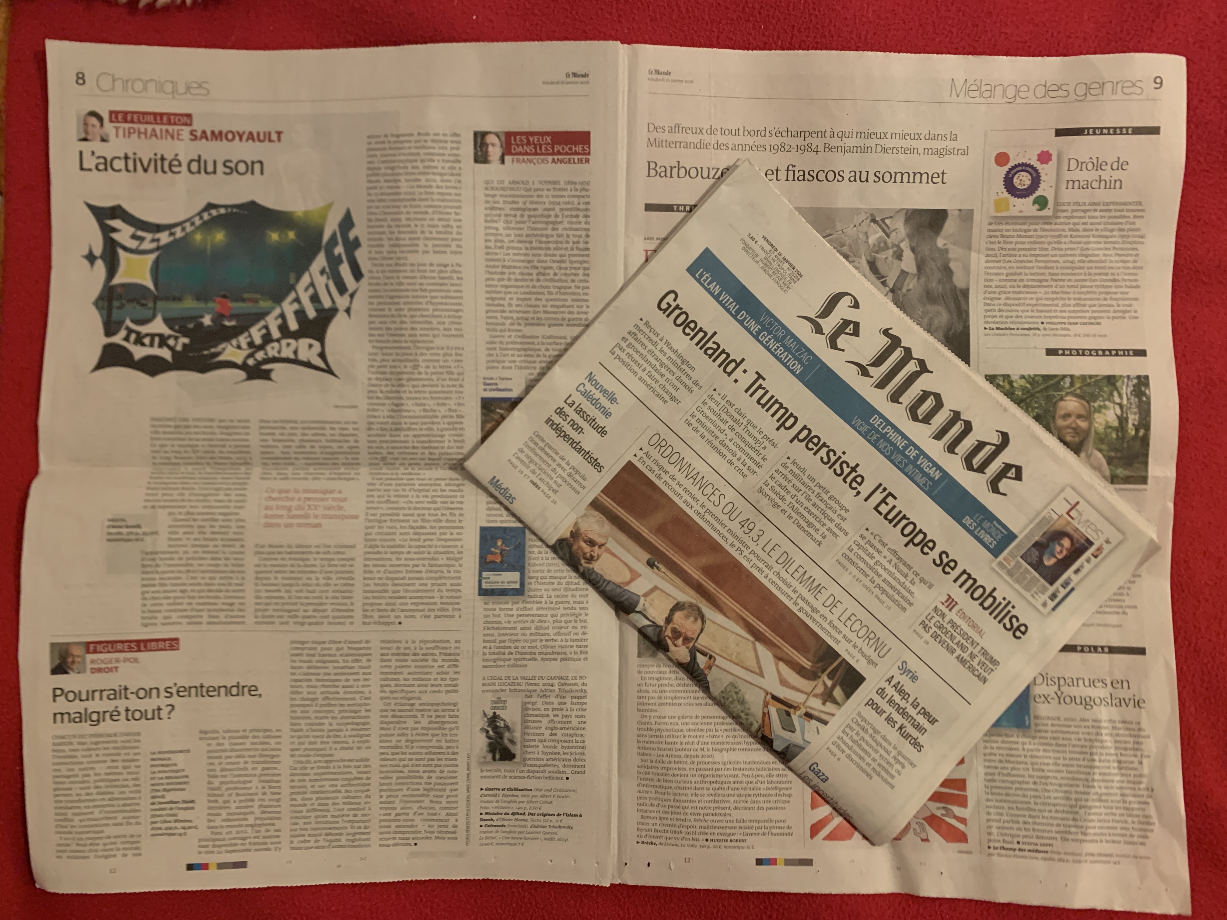 Et puis arriva l’article du feuilleton littéraire de Tiphaine Samoyault dans Le Monde. À quelques minutes près, j’aurais pu le découvrir en compagnie de mon éditeur, puisque nous venions, précisément, de boire un verre. J’étais dans le métro quand il m’a envoyé un sms pour m’avertir avant, quelques instants plus tard, de partager l’article en question.