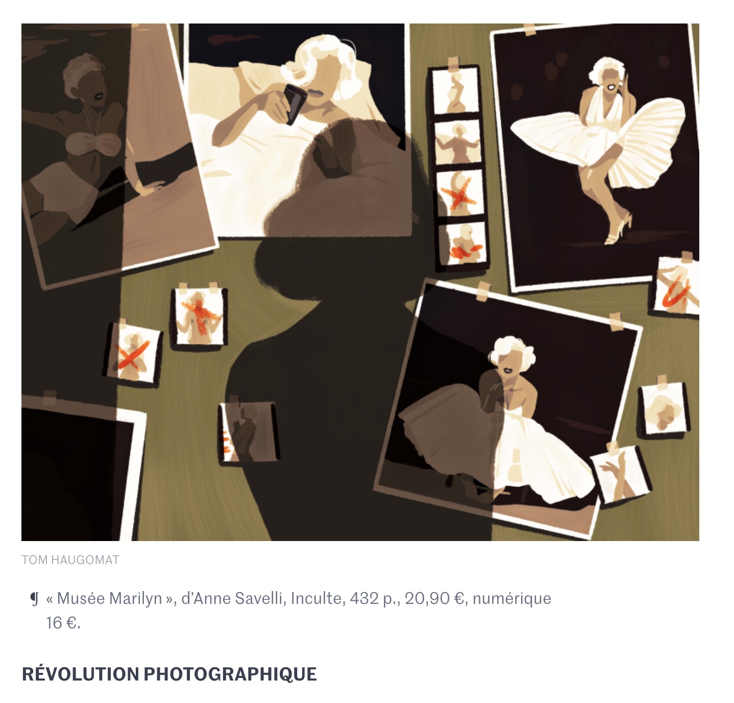 Marilyn comme vous ne l’avez jamais vue ? Ou plutôt : Marilyn comme vous l’avez déjà vue, cent fois, mille fois, sur des milliers de photos. De 1944 à 1962, en marge du cinéma, Marilyn Monroe n’a cessé d’attirer l’oeil des photographes. Pourtant, dans le livre d’Anne Savelli, nulle image. Le musée qu’elle a conçu, aussi imaginaire que réel, nous propose d’aller au-delà des apparences. Derrière chaque photo, il y a un corps, une pose, un décor, une mise en scène, un état d’esprit, un objectif, un moment particulier – qui tous disent quelque chose du secret Monroe –, mais aussi une rencontre, une complicité, voire une intimité.