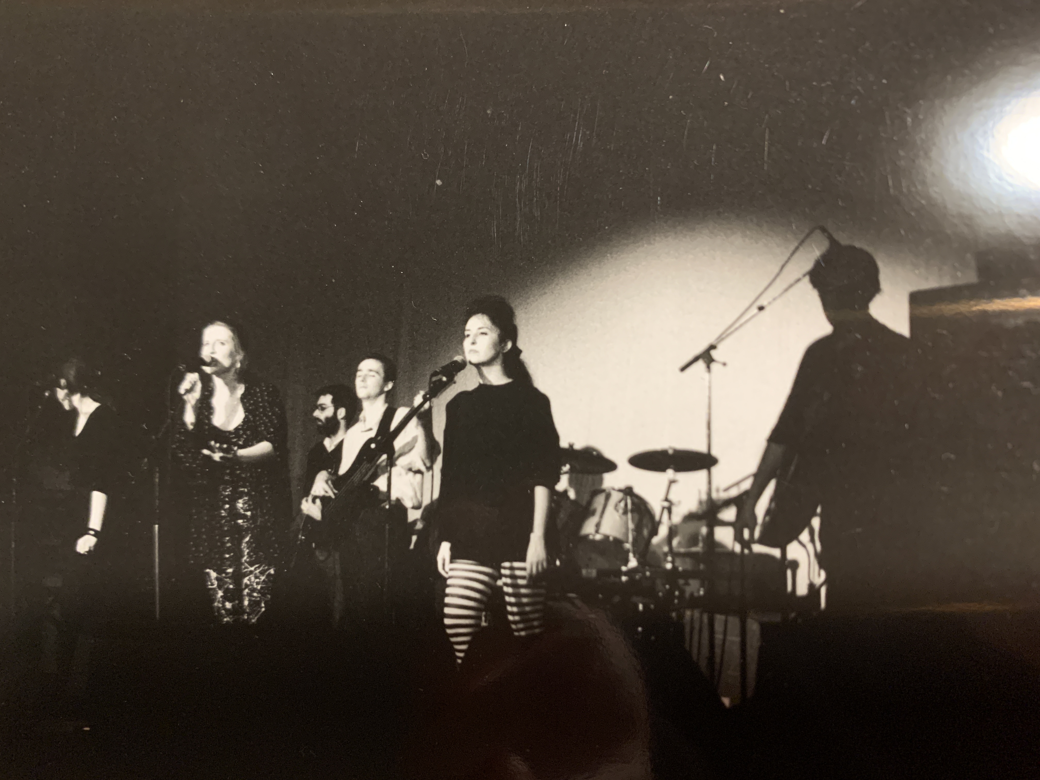 À part ça, le tri des archives se poursuit, et c’est ainsi que j’ai retrouvé plusieurs clichés de ma période "choriste dans un groupe de rock" à la fin des années 80. La fille aux collants rayés, eh oui, c’est moi ! Un clin d’oeil à Valérie, la chanteuse du groupe Axone, si jamais elle passe par ici.