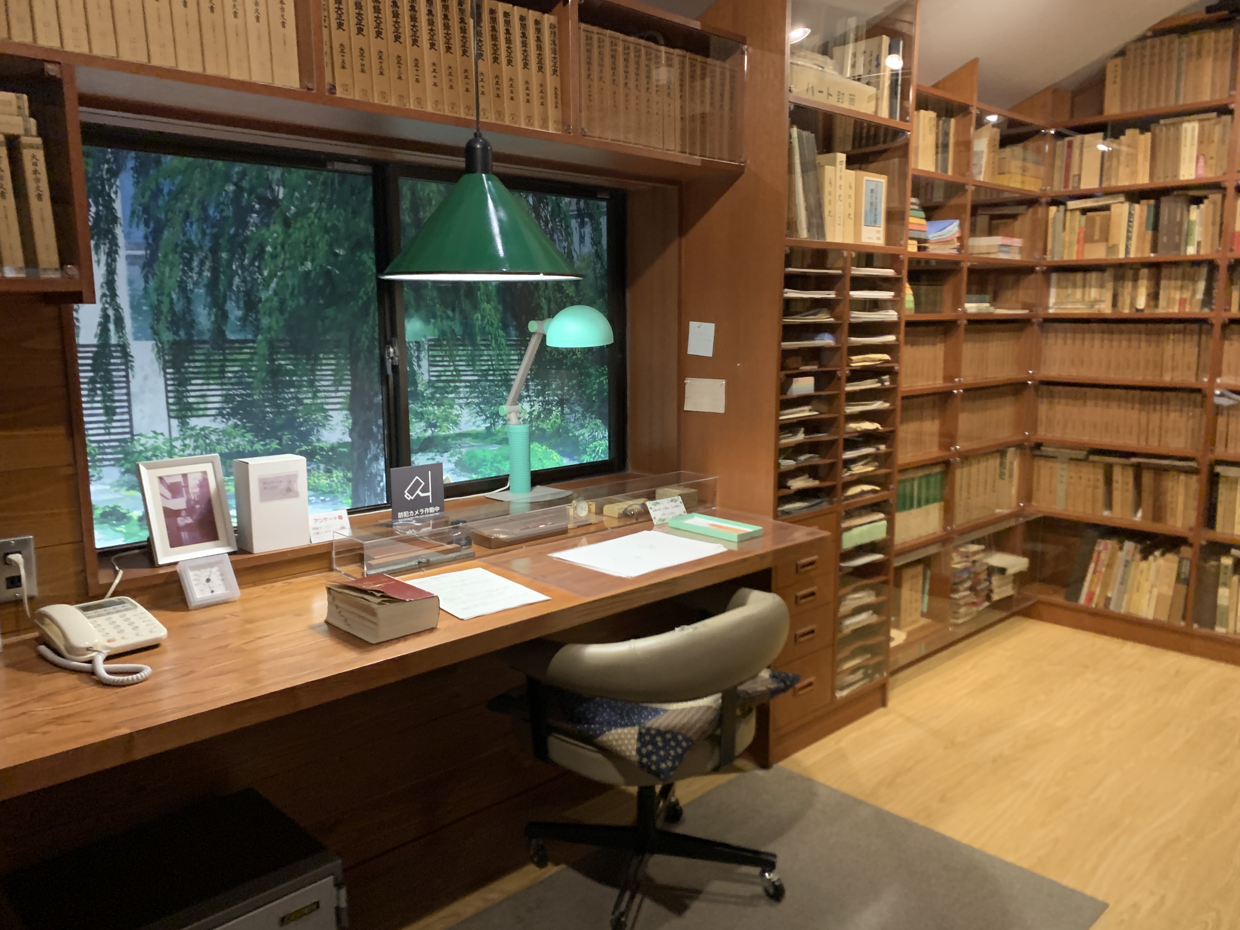Samedi Les nouvelles d’ici prennent le dessus et me permettent, paradoxalement, d’enfin savourer tout ce que je n’ai eu l’impression que de survoler lorsque j’ai arpenté des rues, visité des musées — comme celui, ci-dessus, qui restitue, au sein d’une bibliothèque publique, moderne, le bureau d’Akira Yoshimura, écrivain célébrissime au Japon, dont j’ai lu le roman Liberté conditionnelle pendant le voyage. Durant des jours, tout en regardant autour de moi, je me suis demandé si ce présent hors norme du voyage (même s’il ne s’agit que de faire la touriste) n’était pas déjà une forme de passé dont on espère faire son miel au retour. Peut-être. Il n’est déjà plus possible de le savoir.