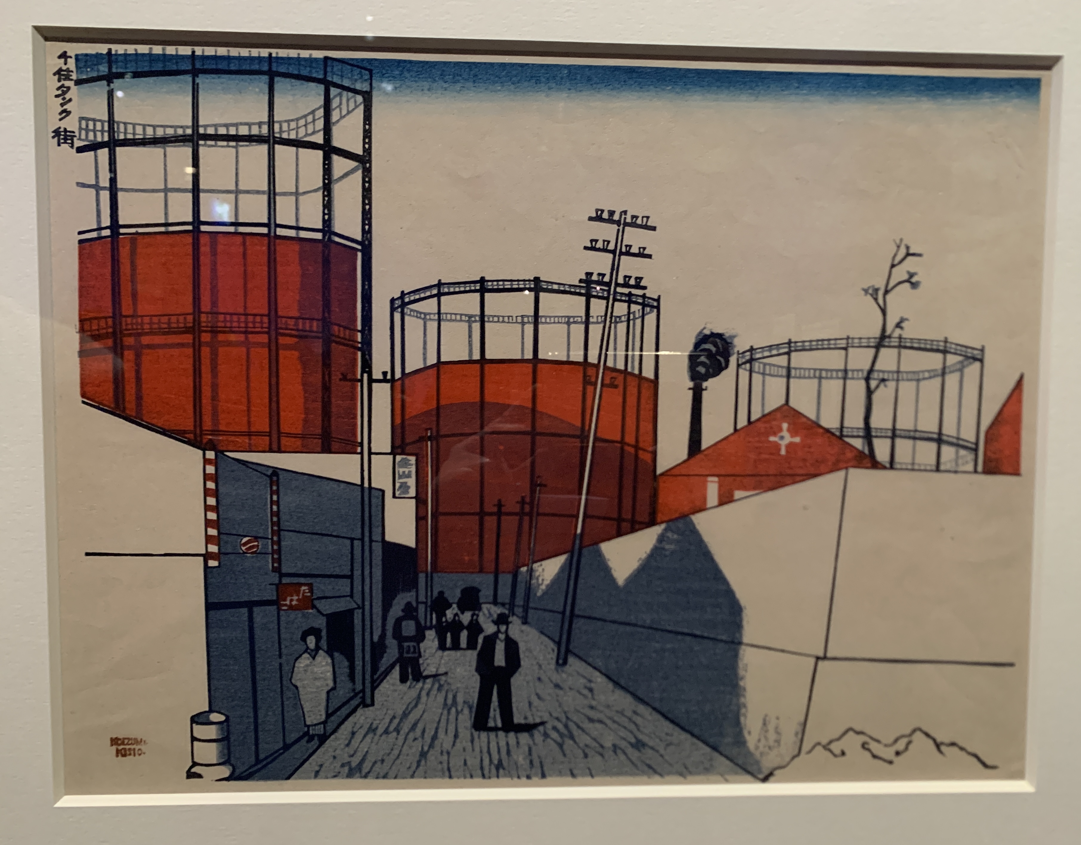 (Cent vues du Grand Tokyo à l’ère Shôwa : les gazomètres de Senju de Kishio Koizumi, 1930, Collection du Tokyo Metropolitan Edo-Tokyo Museum : unique sortie de la semaine dernière, à la Maison du Japon)