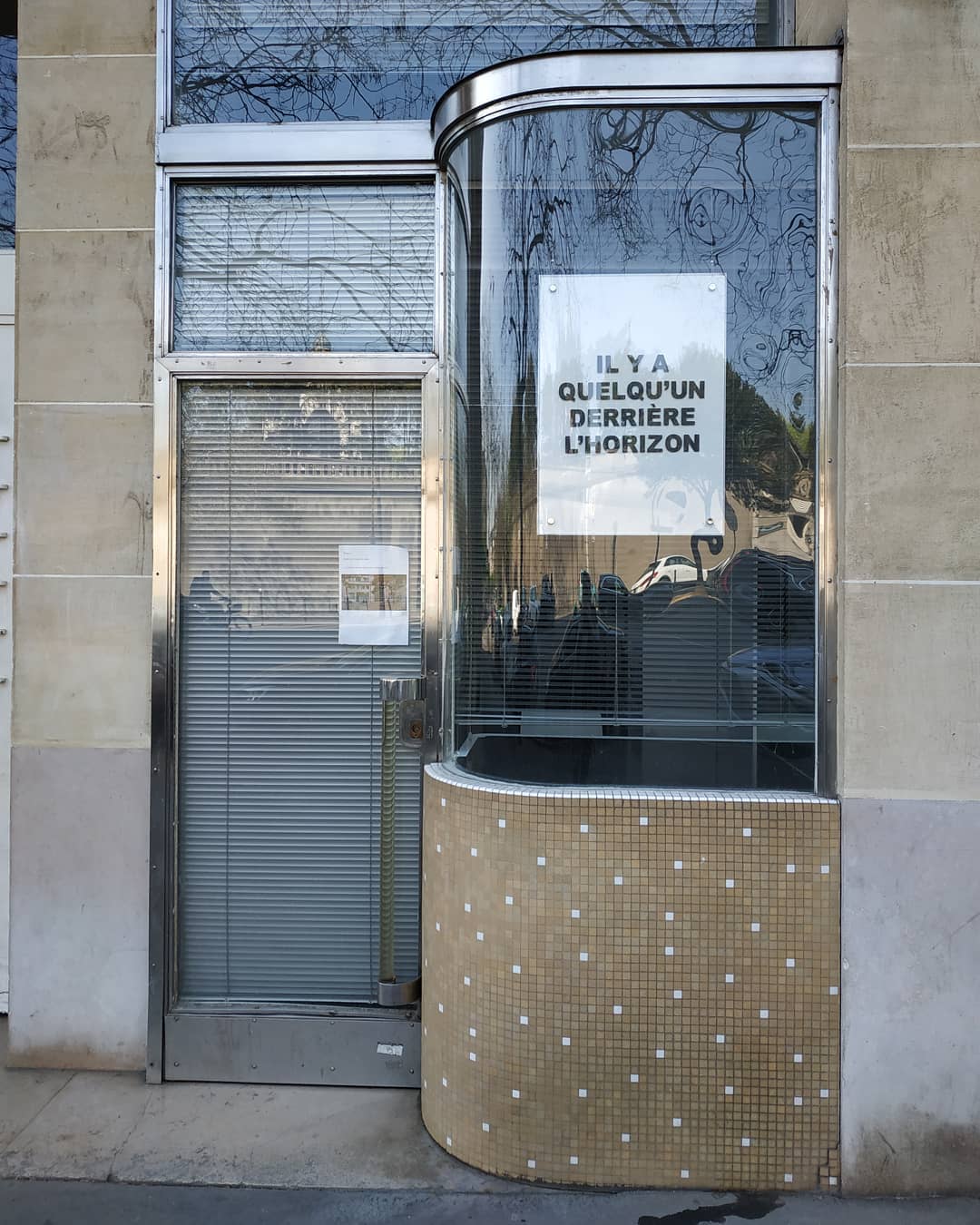 Mardi. Je suis partie de chez moi quelques jours sans changer de ville. La photo ci-dessus montre l’un des repères secrets du trajet vers les beaux quartiers, boutique qui n’en est pas une (bureau, agence, appartement, qui sait ?), espace apparemment pris par erreur pour un cabinet de dentiste, ce qu’atteste la note un peu agacée scotchée sur la porte. Du trottoir d’en face, on voit qu’à l’intérieur un grand ICI est affiché. Il inaugure peut-être une phrase. Pour le savoir, il faudrait approcher, regarder à nouveau. Mais non. Rien de mieux que de laisser le lieu à son énigme.