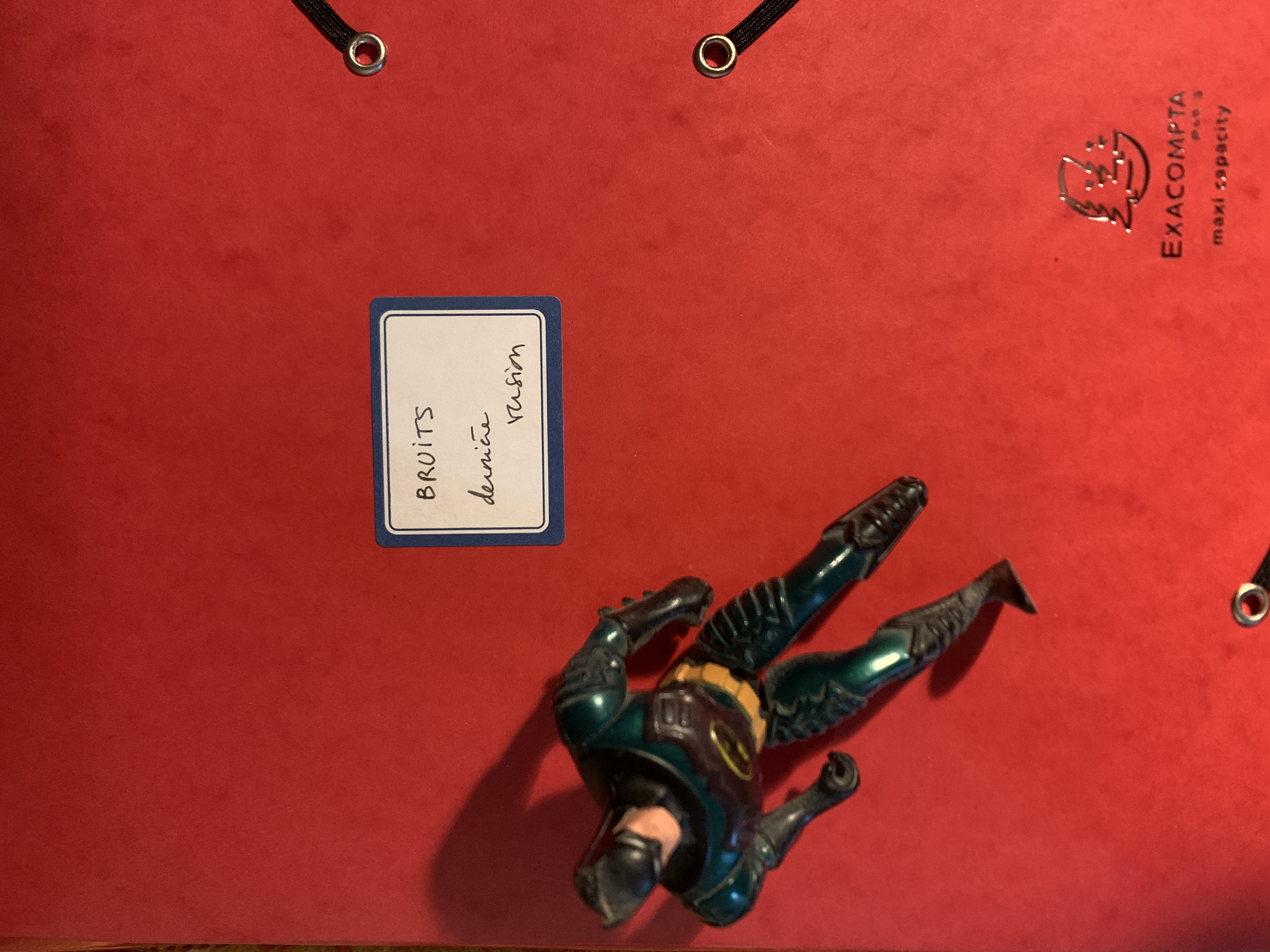 Je ne sais plus du tout d’où vient ce Batman, mais, j’avoue, j’aimerais bien, désormais, dénicher une superhéroïne, une Wonder woman ou une Elektra (pourquoi choisir ? les deux, en réalité), qui s’assiérait sur mes manuscrits.
