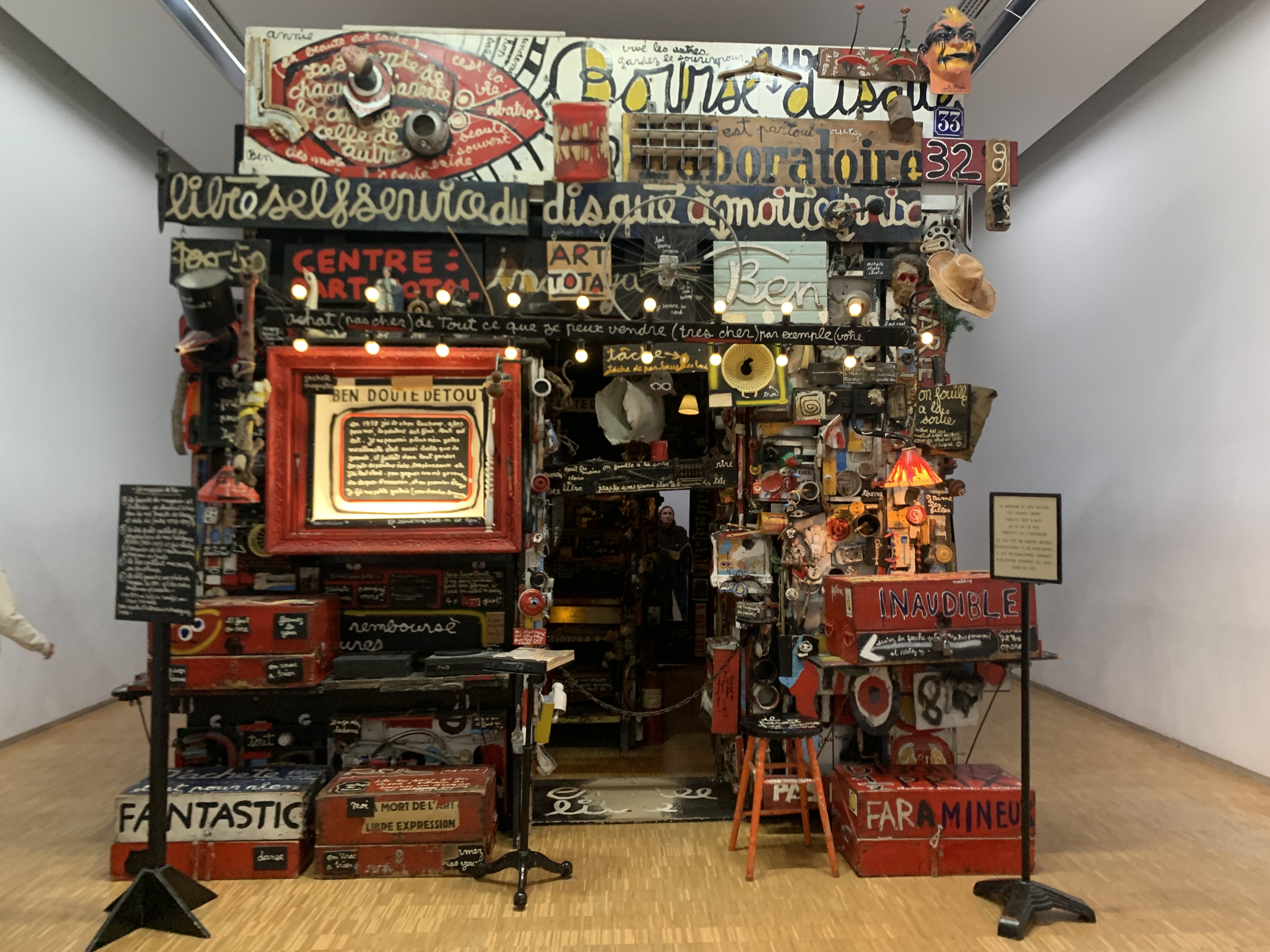 Aujourd’hui, une fois de plus, je viens le visiter. Un père et son fils (10 ans ?) entrent avec moi. Ils sont enthousiasmés et le disent, ce qui fait ma joie. J’arrive ensuite à y rester quelques secondes toute seule, le temps de prendre des photos. Je mesure mon privilège et en ressors, comme toujours, dans une sorte d’allégresse secrète. L’art, dans ce qu’il a de bizarre, d’aventureux, d’accueillant, de féroce, de sombre, d’explosif, de moqueur, d’apparemment bête, d’exaltant, tout cet art qui nous est offert, est absolument essentiel. Il suffit d’entrer dans le musée pour le comprendre.