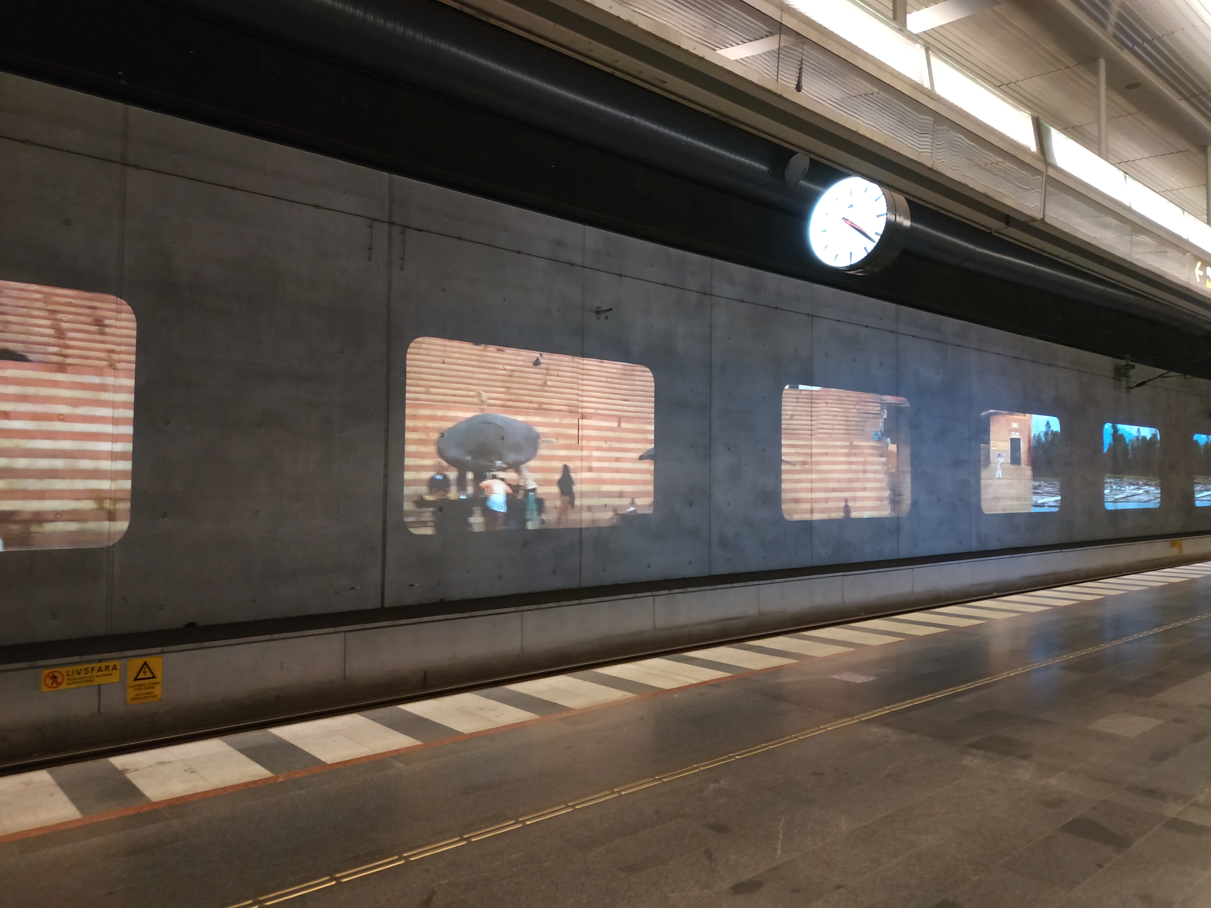 À la gare de Malmö, en station souterraine, pas de panneaux publicitaires mais des écrans qui ouvrent sur le film continu de nouveaux paysages (j’ai cru reconnaître les rives du Gange).