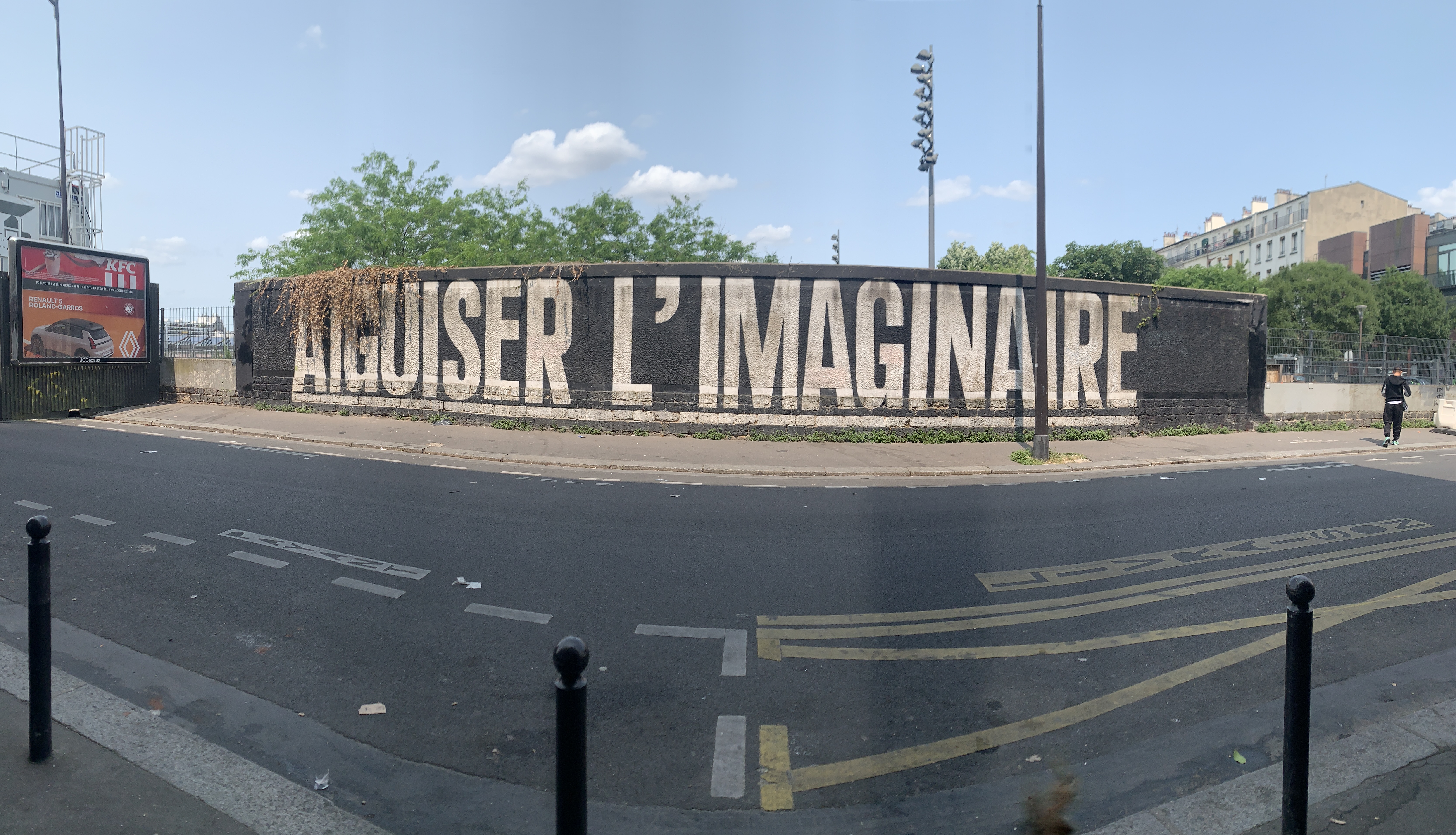 (Oh, un panoramique, ici, pour la première fois. Je dois être influencée par les photographies des appartements, qui vous ajoutent des mètres carrés. C’était néanmoins la seule façon de faire entrer cette formule, qui fait la jonction entre 18e et 19e arrondissement, dans le cadre.)