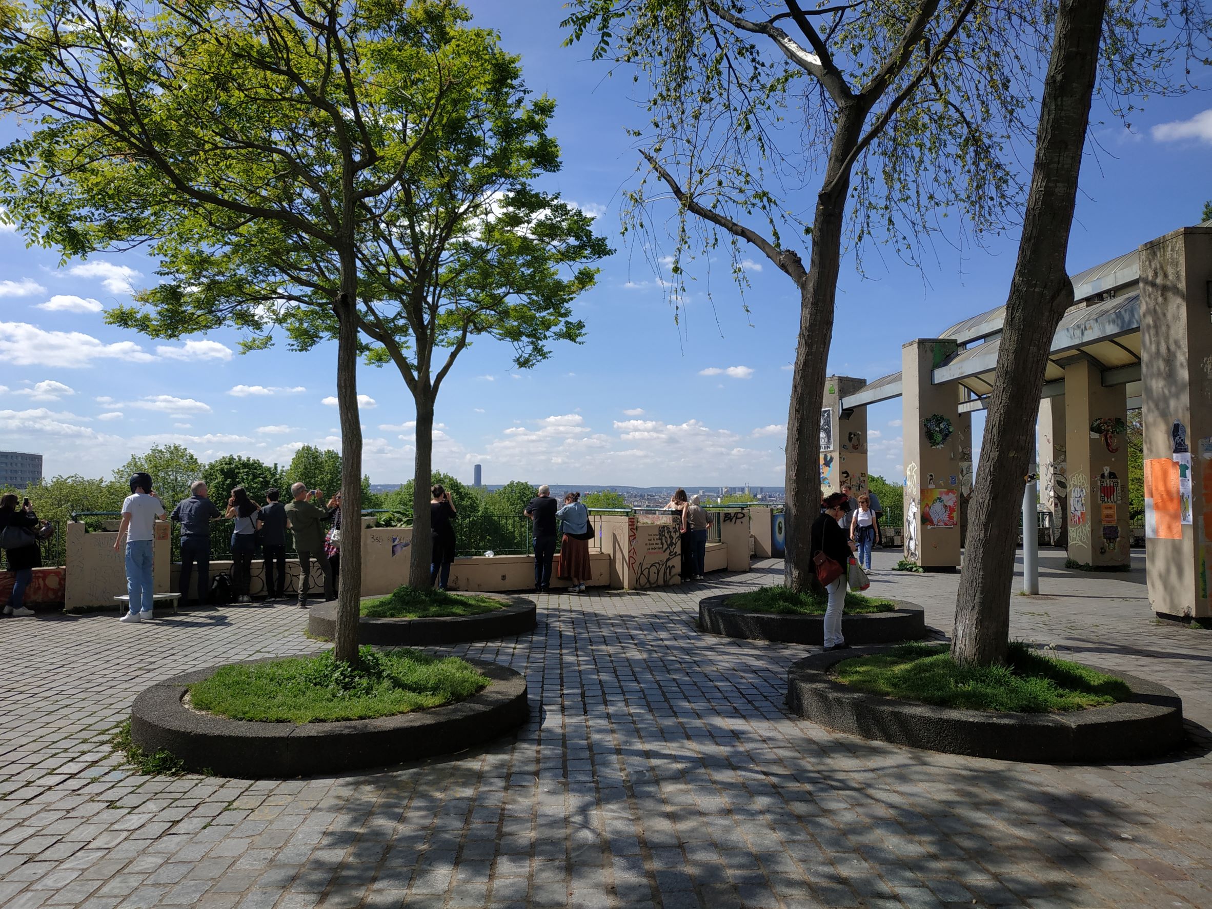 Un homme qui dort, le livre comme le film, est peut-être l’œuvre dont je me sens le plus proche depuis que je l’ai découverte, au début de la vingtaine. Cette fois, à la fin du film, un hiatus entre le texte entendu en voix off et le lieu du tournage me saute aux yeux : tandis que Ludmila Mikael lit la dernière phrase, qui mentionne la place Clichy, c’est en haut de la rue Vilin que nous nous trouvons. Nous sommes plus exactement sur la place qui, aujourd’hui, domine le jardin de Belleville (voir la photo ci-dessus). Une rue dans l’ombre qui avale, littéralement, le héros. La caméra filme également le début de la rue des Envierges, où j’ai de nombreux souvenirs d’étudiante. Je décide d’y retourner.