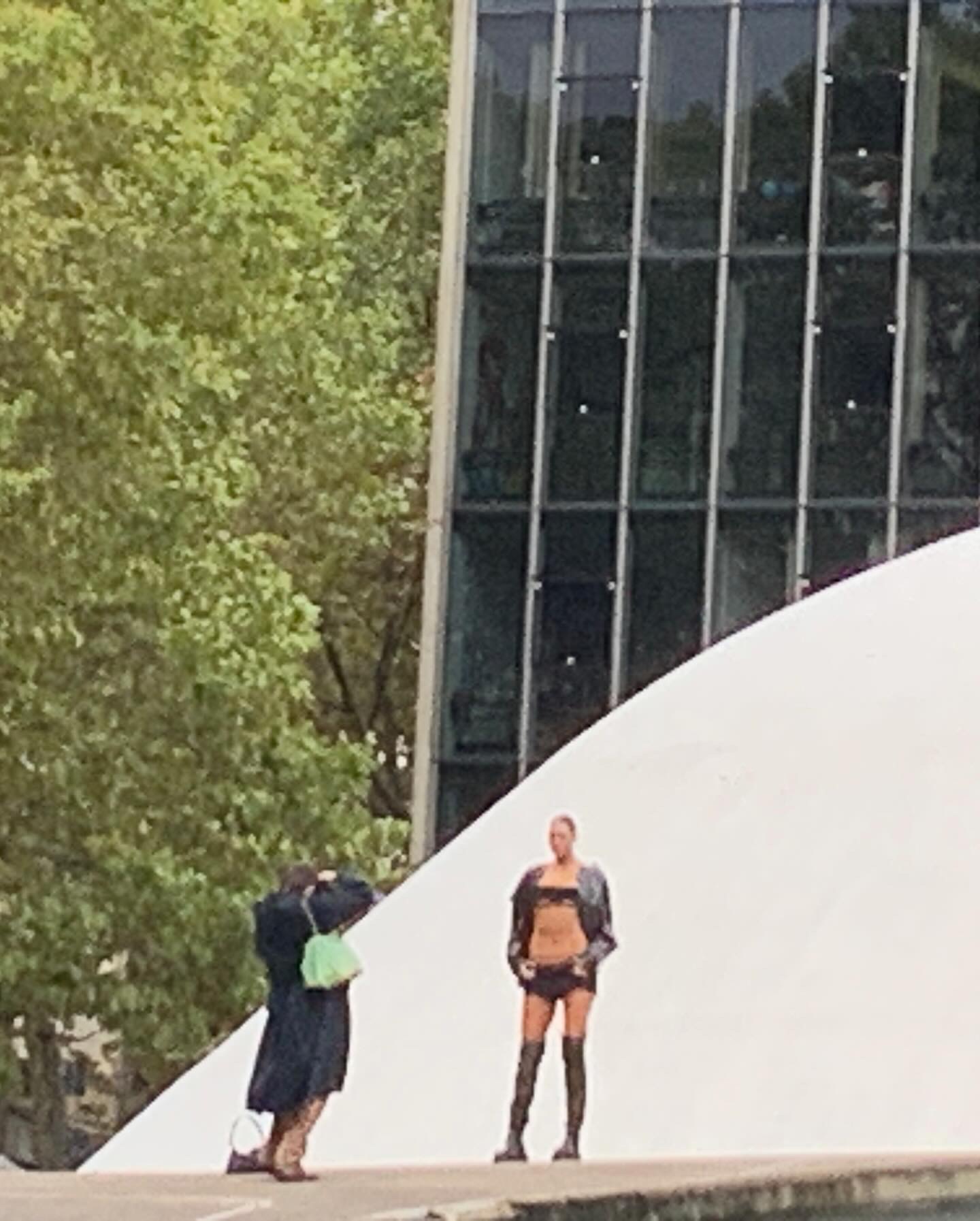 Vers le milieu de la semaine, je sors un instant rendre des livres à la bibliothèque. Quelques mètres devant moi, une immense femme, très belle certainement (je ne la vois que de dos) et habillée très court, cherche à entrer au siège du Parti communiste. Je la vois partir vers une porte qui, en réalité, mène aux garages, prise au vol en photo avec son téléphone par un type sans vergogne. Une fois en bas d’avenue, je comprends mieux : c’est la fashion week.