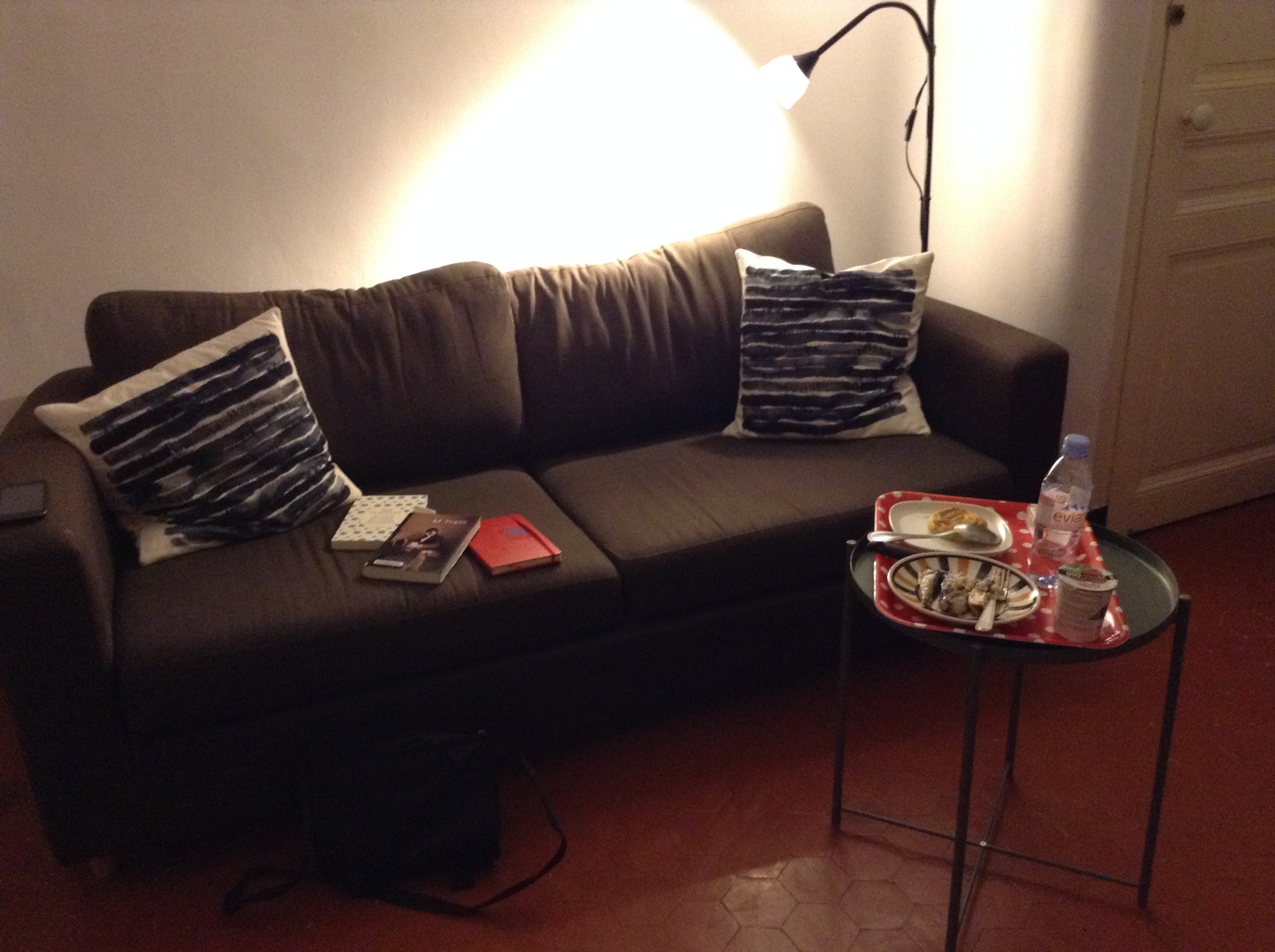 Le jeudi, j’y arrive, seule dans le local de L’aiR Nu. J’essaye de ne pas censurer ce qui vient (ni sur la forme, ni dans fond, pour le dire vite, sachant que le dire ainsi n’a pas de sens). Ne pas juger. Ne pas dire : c’est débile, c’est enfantin, c’est mal écrit, encore un personnage de plus, qu’est-ce qu’on va en faire ? Bref, ne pas laisser le surmoi prendre le pouvoir. Le texte est stupide et hétérogène ? Eh oui, ça commence souvent comme ça. Ensuite, on retravaille. J’ai besoin d’avoir l’ensemble de la matière avant la fin de l’année, aussi : en avant !