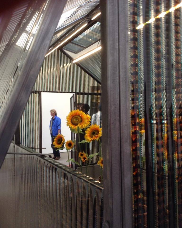Ornée de tournesols, cette cabane s’appelait La serre du Bonheur. Je vois encore les murs et les deux pans de toit, noirs de loin : mille arrêts sur image. Je n’ai pas abordé Varda, ni seule ni entourée : même sans pansement sur le genou, il était trop tard pour oser.